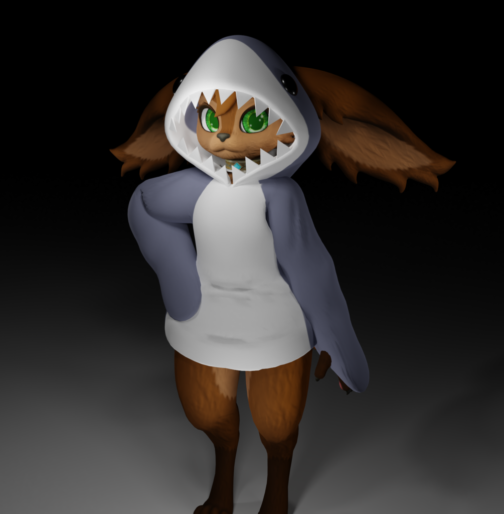 A very soft and comfortable hoodie of a Shark! I was strutting around in these hoodies for a few sessions of playing vrchat and haven't seen more people wanting to hug the soft pillow that was me! And COULD be you too! Includes a blend shape to increase your thighs thickness and your asses largeness if you're on the chunkier side!