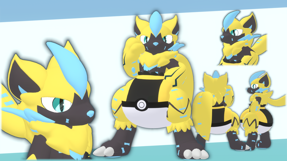 The Zeraora x Midnight Lycanroc Critter 3d model with blender file, fbx, textures, photoshop files, unity package! All ready and set up for ease of use