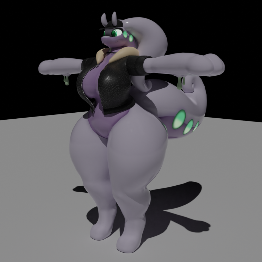 A 3d anthro Goodra model made for vrchat use. Unity package set up, blender files, photoshop files, and all of its textures for easy editing on your behalf!